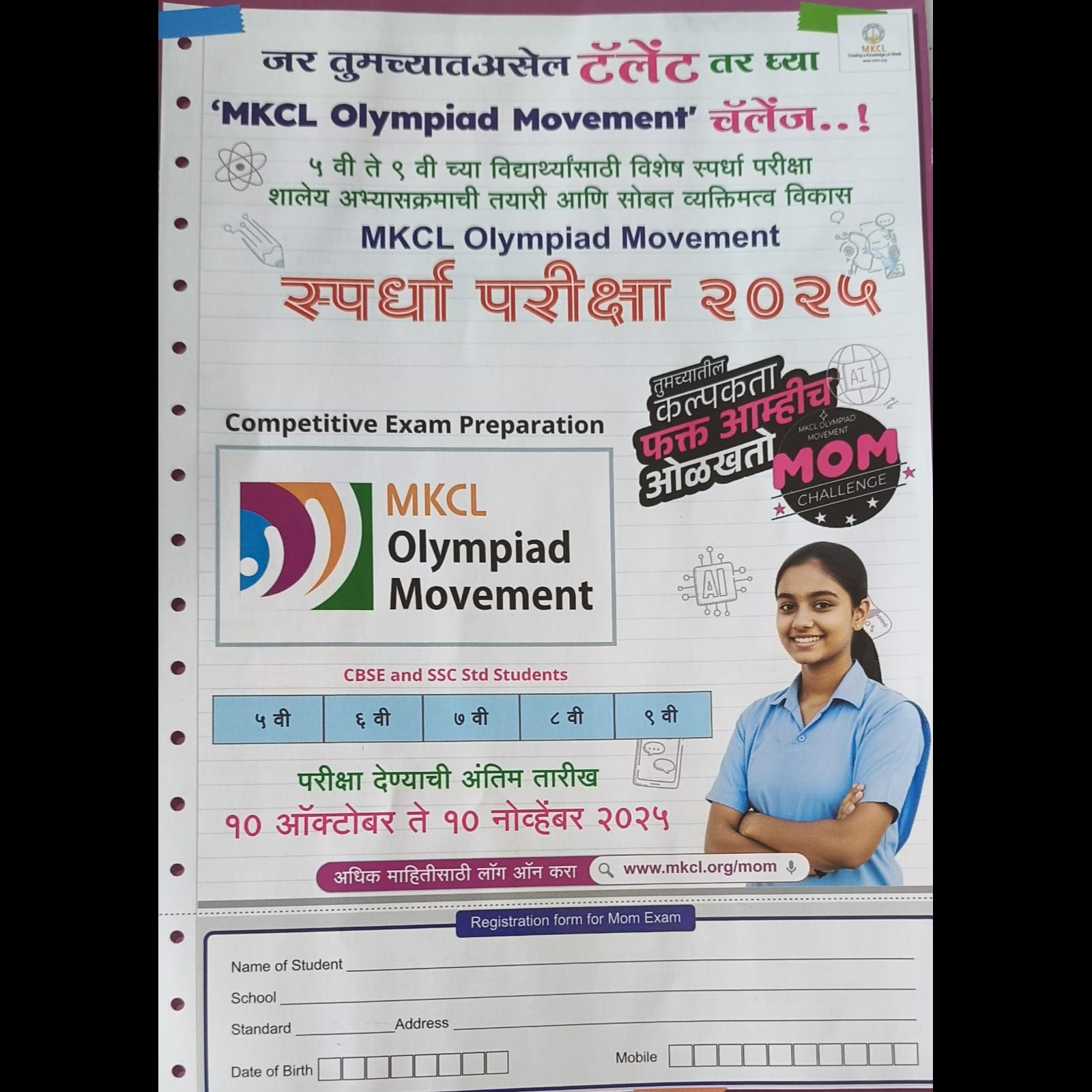 GLOBAL COMPUTER EDUCATION GOVT.AUTHORIZED CENTER SINCE 1998 About MKCL Olympiad Movement The MKCL Olympiad Movement offers a state-level competitive examination to assess the academic quality of students from the CBSE Board (English medium) and SSC Board (Marathi, Semi-English, and English medium) for grades 5th to 9th. In addition to the school subjects, the MKCL Olympiad Movement evaluates whether students can apply the knowledge they have gained in real life and if they can use information from one subject to understand others. Students also have the opportunity to learn through assessments. They will experience solving challenging and innovative questions that will stimulate their intellect. Educational objectives include Knowledge, Comprehension, Application, Analysis, Synthesis, and Evaluation/Judgement, as defined by educationist Dr. Benjamin Bloom. In addition, 21st-century skills and multiple intelligences focus on developing well-rounded learners equipped with creativity, critical thinking, collaboration, and emotional intelligence for real-world success. EXAM FEES ONLY RS.125/- CONTACT NO:7045990990/9022990990