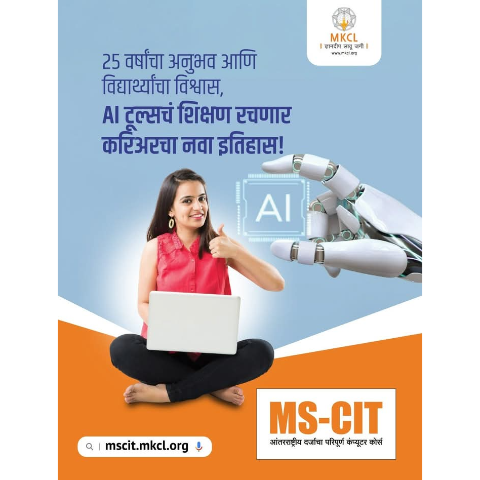 GLOBAL COMPUTER EDUCATION GOVT.AUTHORIZED CENTER SINCE 1998 ADMISSION OPEN FOR MS-CIT COURSE CONTACT NO:7045990990/9022990990 आजच्या डिजिटल युगात, तंत्रज्ञानासोबत अपडेट राहणे आवश्यक आहे. जिथे कृत्रिम बुद्धिमत्ता (एआय) आणि डिजिटल कौशल्ये प्रत्येक क्षेत्रात महत्त्वाची भूमिका बजावत आहेत, तिथे तुमच्या मुलांच्या उज्ज्वल भविष्यासाठी योग्य पाऊल उचलणे आवश्यक आहे. एमएस-सीआयटी का महत्त्वाचे आहे? ✅ २५+ वर्षांचा अनुभव आणि लाखो विद्यार्थ्यांचा विश्वास ✅ भविष्यातील करिअरच्या संधींसाठी डिजिटल कौशल्ये आवश्यक आज जग बदलत आहे, आणि तुमच्या मुलांचे करिअर एआय आणि तंत्रज्ञानाशी जोडले गेले पाहिजे. त्यांना एमएस-सीआयटीसह 'एआय रेडी' बनवा आणि भविष्यासाठी एक मजबूत पाया तयार करा!