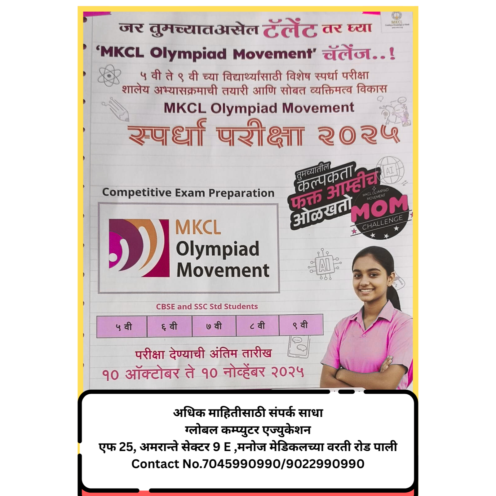 GLOBAL COMPUTER EDUCATION REGISTRATION OPEN FOR MOM OLYPIAD COMPETETIVE EXAM FOR STD 5TH TO 9TH ALL BOARDS CONTACT NO:7045990990/9022990990