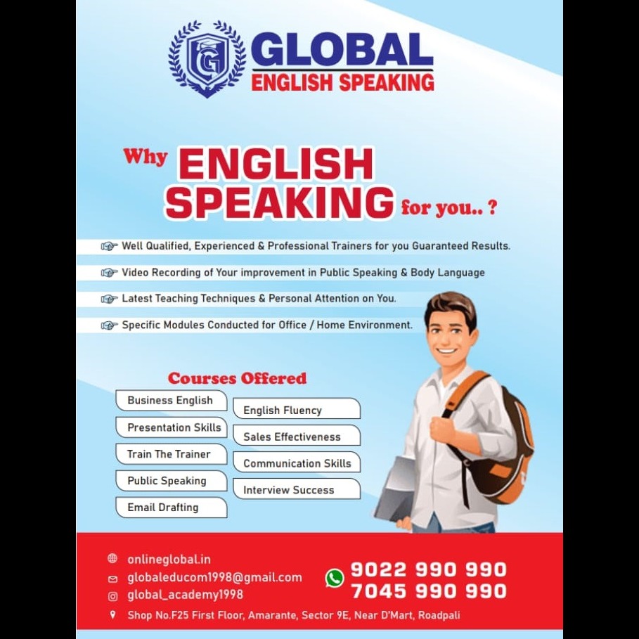 GLOBAL ENGLISH SPEAKING WHY IMPORTANCE ENGLISH LANGUAGE IN OUR LIFE English is vital in today's world due to its status as a global language, facilitating communication, education, and career advancement. It provides access to information, cultural enrichment, and international opportunities, contributing to personal and professional growth. Here's why English is so important: 1. Global Communication: English is the most widely spoken second language, acting as a bridge between different cultures. Proficiency in English allows for effective communication with people from diverse backgrounds, fostering international understanding and collaboration. 2. Access to Information: A vast amount of information, including scientific research, literature, and online resources, is available in English. Learning English enables individuals to access this wealth of knowledge and stay informed about various topics. 3. Career Advancement: In today's globalized job market, English proficiency is often a prerequisite for many positions. It enhances career prospects, allowing individuals to work with international clients, collaborate with global teams, and access better job opportunities. 4. Education and Higher Studies: English is the primary language of instruction in many educational institutions worldwide, particularly at the higher education level. Learning English opens doors to a wider range of academic opportunities and allows students to pursue their studies in prestigious institutions. 5. Cultural Enrichment: English provides access to a vast array of literature, films, music, and other cultural expressions from around the world. This exposure can broaden perspectives, enhance understanding of different cultures, and contribute to personal growth. 6. Traveling: English is widely spoken in many tourist destinations, making travel more convenient and enjoyable. It allows for easier communication with locals, navigation, and exploration of new places. 7. Digital Literacy: English is the dominant language of the internet and digital media. Proficiency in English is essential for navigating the digital world, accessing online resources, and participating in online communities. In essence, English is more than just a language; it's a tool for personal and professional success, a gateway to global opportunities, and a means of connecting with diverse cultures and ideas. ADMISSION OPEN HURRY UP CONTACT NO:7045990990/9022990990